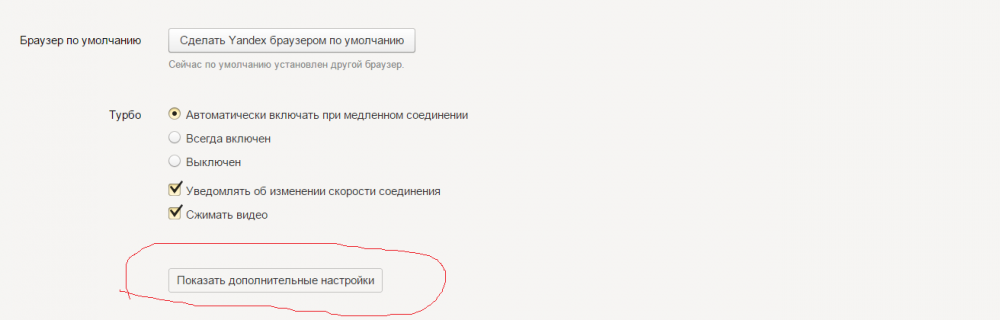 Для начала вам нужно будет перейти в меню настроек этого браузера. Нажимаете на значок в правом верхнем углу и переходите в настройки браузера. В открывшемся окне пролистываем вниз до тех пор, пока не найдете пункт "Показать дополнительные настройки". Нажимаете на него.