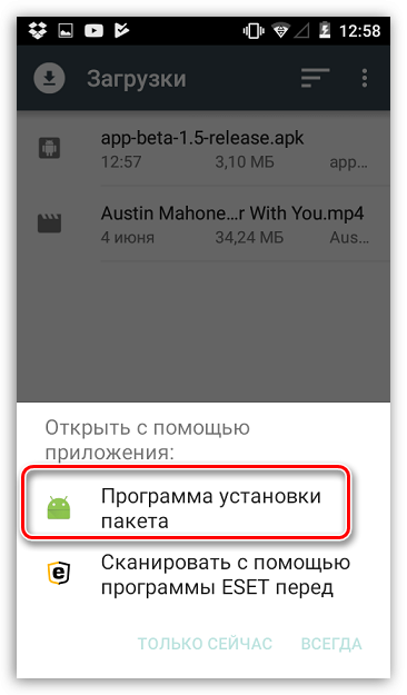 - На устройство сразу же будет скачен APK-файл, который потребуется после окончания загрузки запустить.
