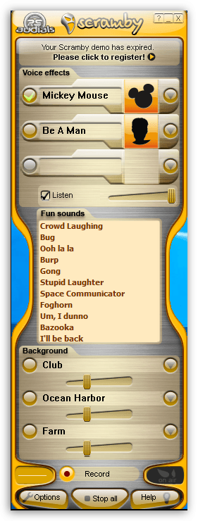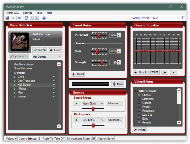 В арсенале программы имеется 30 эффектов, с помощью которых можно преобразовать свой голос, например, создавая эффект эхо или имитируя голоса различных животных.