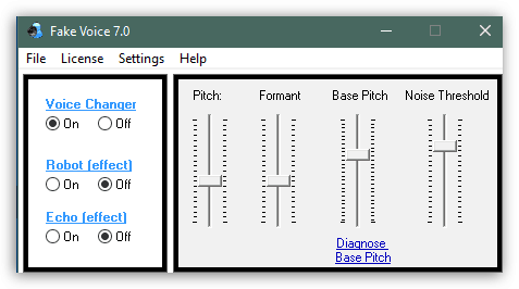 В отличие от всех выше перечисленных программ, которые уже оснащены набором видоизмененных голосов, например, для имитации голоса Микки Мауса, в программе Fake Voice они отсутствуют – здесь лишь имеются ползунки для самостоятельной калибровки, то есть процесс задания нового голоса будет происходить полностью вручную.
