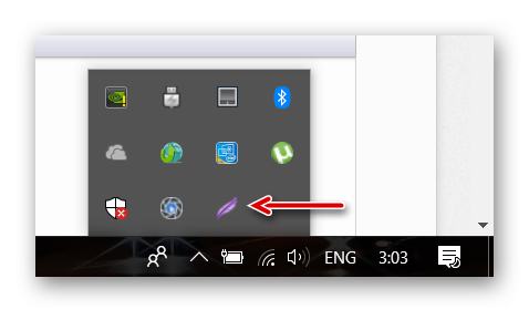 - После установки в «Панели задач» нажмите на иконку стрелки, которая отвечает за показ скрытых элементов. Найдите и нажмите на иконку Lightshot.