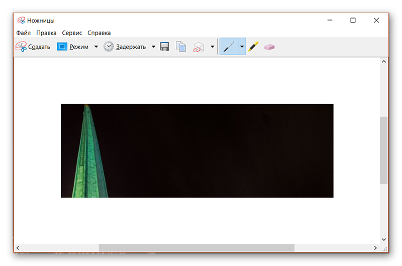 - После откроется окно, где можно редактировать недавно созданный скрин. К сожалению, возможности для редактирования сильно урезаны, вы можете только что-то нарисовать или стереть. Инструмента, позволяющего написать текст на скриншоте нет.