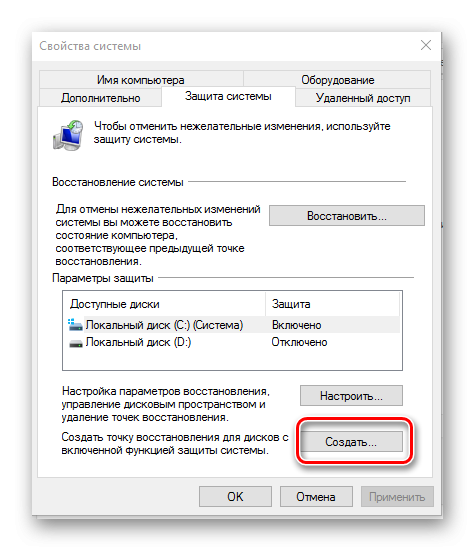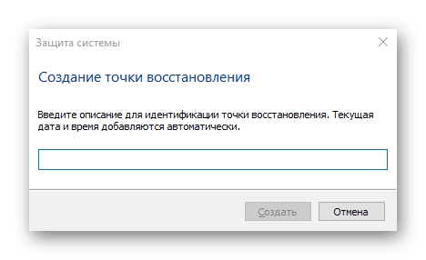 - Затем нажать на «Создать», ввести характеристику будущей точки восстановления и дождаться завершения.