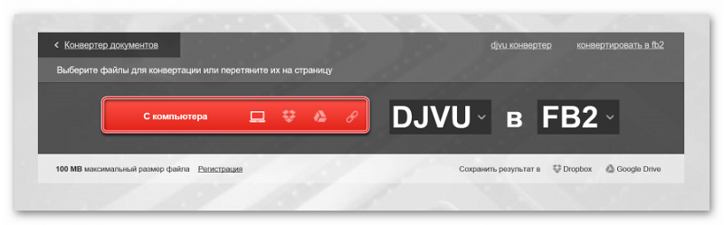 Данный сайт имеет множество функций, но нам он пригодится, чтобы конвертировать документ формата DJVU в FB2.