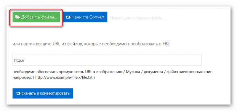 - Кликните на кнопку «Добавить файлы» или же вставьте ссылку на сайт, где сервис сможет найти нужный файл.