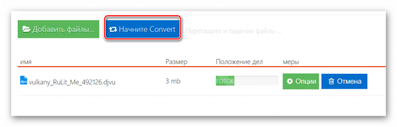 - Затем кликните на «Начните Convert» и подождите несколько секунд - файл очень быстро загружается на сервер.