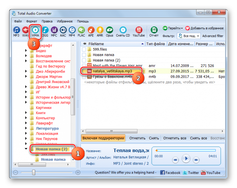 Иногда есть нужда отконвертировать файл общеизвестного формата MP3 в несколько более компактный, «выведенный» Windows, формат WMA.