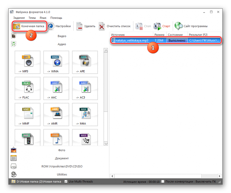 - Для изменения файла кликните на «Конвертировать». Результат конвертации вы можете посмотреть в папке, указанной вами ранее.