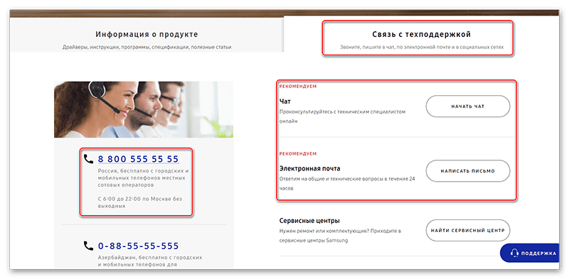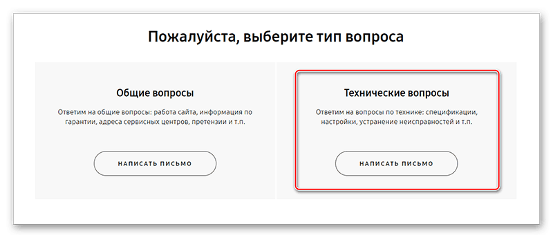 Рассмотрим ваши действия на примере обращения к технической поддержке Samsung: