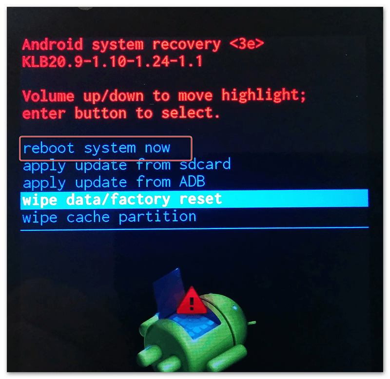- В открывшейся менюшке выберите «Yes – delete all user data». Следом необходимо выбрать «Reboot system now», чтобы перезагрузить устройство с изменёнными настройками.