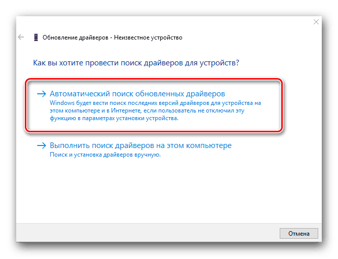 - Теперь Вы можете выбрать «Автоматический поиск» или же ручной. Выбрав тот или иной вариант и следуя подсказкам интерфейса Вы запросто установите программное обеспечение.