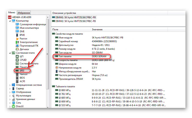 - Перейдите в меню «Системная плата» и выберите пункт «SPD».