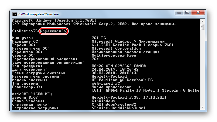 и нажмите «Enter» на клавиатуре.systeminfo![]()