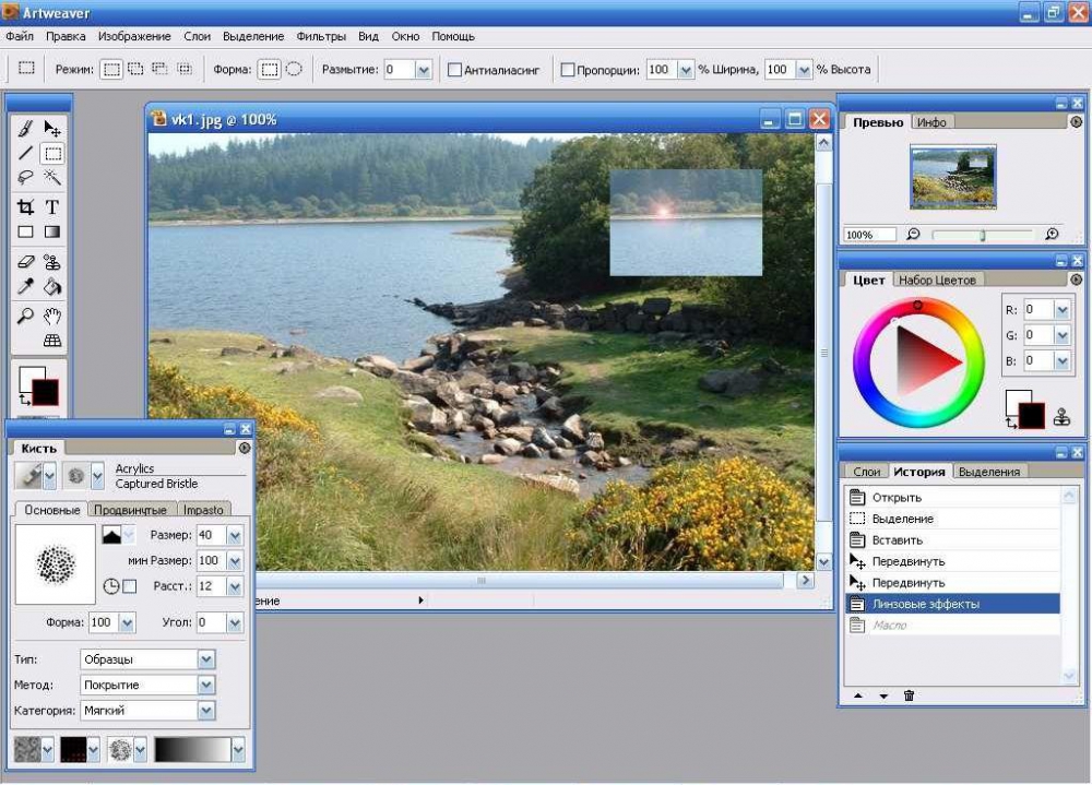 Во первых Artweaver имеет специальную панель для настройки кисти. По количеству возможностей фоторедактор не уступает аналогам. Дизайн больше всего схож на GIMP.