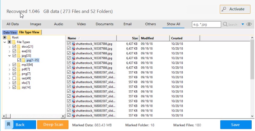 Шаг 3: После завершения сканирования раздела в "Представлении данных" и "Представлении типа файла" отображается список восстановленных данных.