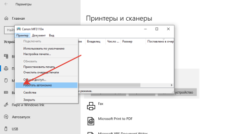 - Убедитесь, что опция Использовать автономный принтер снята.
