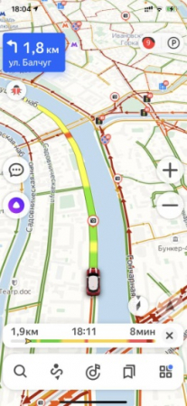 - Во время движения можно увидеть таймер и дистанцию пути. Будет оповещение и возможно предложение для быстрого построения маршрута.