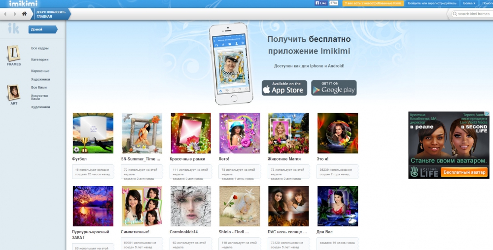 Онлайн-сервис представляет собой красочный ресурс, где в изобилии представлены рамки, коллажи, готовые фото, где нужно только лишь вставить изображение лица героя.