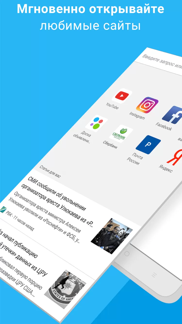 При вводе поисковых запросов браузер предлагает подсказки, что значительно ускоряет доступ к посещенным ранее страницам в интернете.