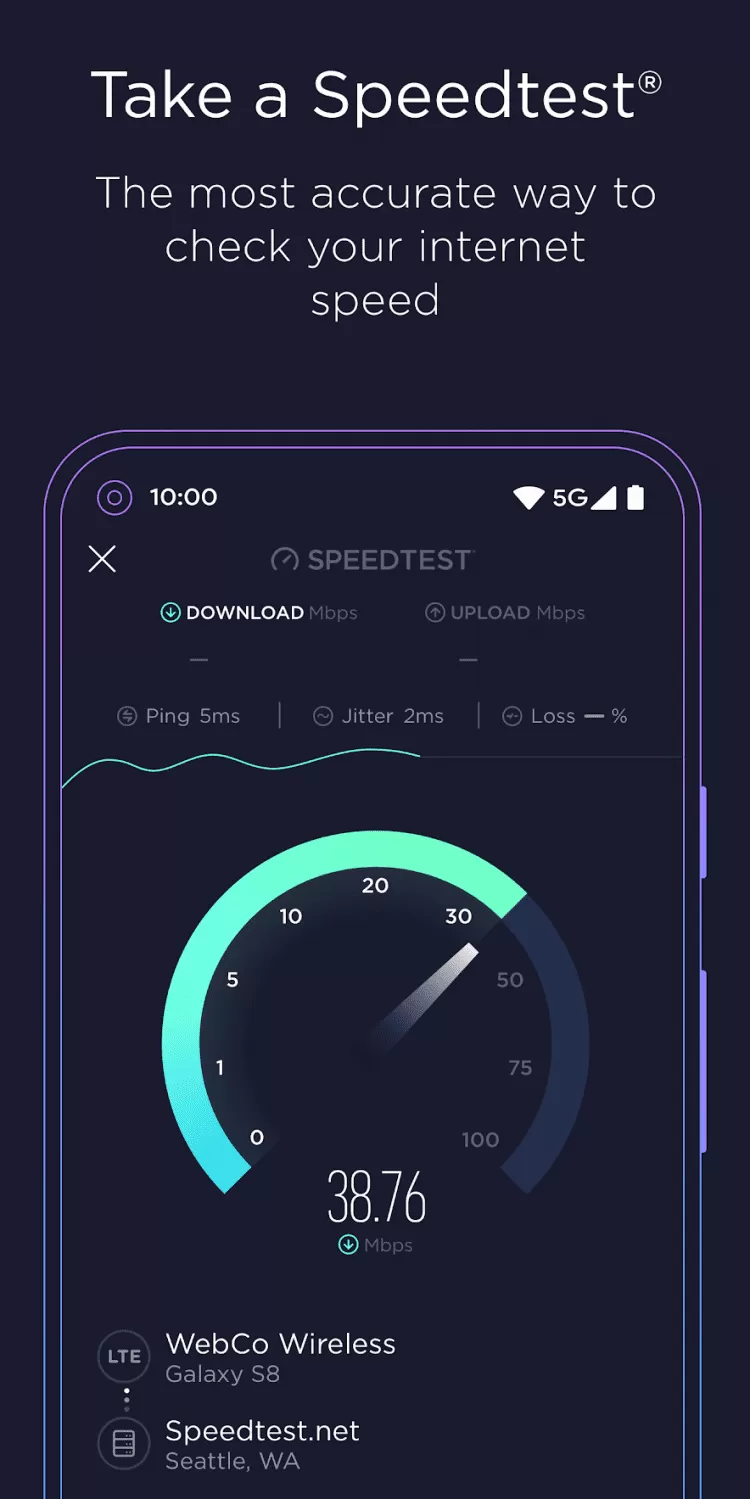 Приложение Speedtest доступно для устройств на Android и установить его – легко. Просто перейдите на наш сайт, найдите приложение Speedtest. и нажмите "Скачать". Затем следуйте инструкциям на экране для завершения установки.