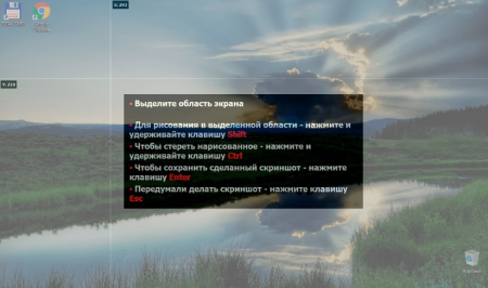 Утилита имеет маленький размер и не очень сильно нагружает процессор. С помощью комбинаций и кликов в определённой области экрана нанесите выделение и нажмите Enter.