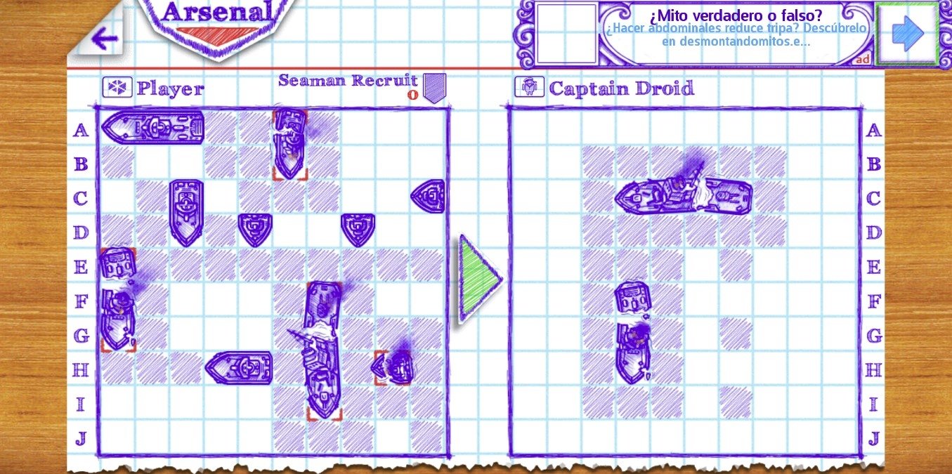 Морской бой 2 - это новая часть популярного проекта, который реализует любимую детскую настольную игру с новыми, яркими красками. Если первое, о чем вы подумали при прочтении названия игры - это вырванные из тетради листы бумаги и чертежи квадрата 10х10 с размещением кораблей, то вы не так уж и ошиблись! Разработчики не просто воссоздали игру на Android-смартфонах, но и оставили стилистику разрисованных листов. Детство возвращается. Скачать можно на нашем сайте совершенно бесплатно АПК файлом.