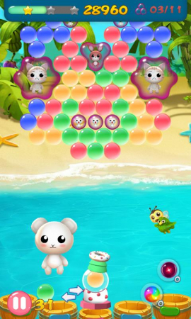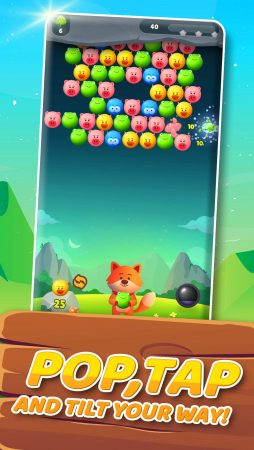 Bubble Shooter: Animals Pop предлагает игрокам возможность погрузиться в мир пузырьков и животных. Вы будете стрелять пузырьками в другие пузырьки, чтобы создавать комбинации из трех и более одинаковых цветов. Каждый уровень будет представлять собой новую головоломку, которую нужно решить, чтобы продвинуться дальше.