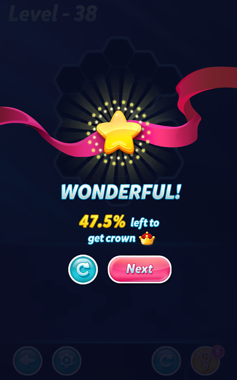 Увлекательный геймплей: Заполняйте поле уникальными шестиугольными фигурами, решая разнообразные головоломки.