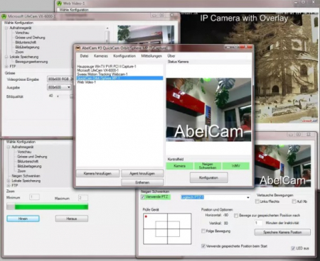 Программу AbelCam эффективно подходит для организации видеонаблюдения в настоящем времени. Приложение может задействовать сразу несколько веб-камер которыми вы сможете управлять в автоматическом режиме или вручную. Вы можете настроить специально веб-камеру для снятия скриншотов с определённым интервалом с подающим записыванием фото и видеоматериалов на жёстком диске ПК, дистанционном веб-сервере или отправка по почте.