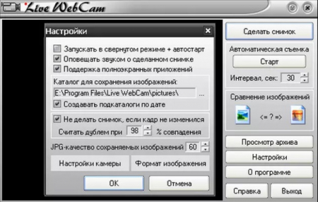 Полезная программа, которая позволит вам делать домашние фотографии следить и активировать систему видеонаблюдения. Вы сможете сохранять автоматические изображения с веб-камер. Основой функции является автоматическое сравнение сделанного и предыдущих снимков что со временем попадает в архив кадров. Приложение балансирует шум при плохом осветлении.
