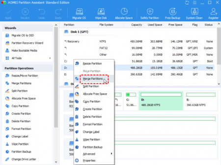 AOMEI Partition Assistant сделает за вас разделы на компьютере тем самым вы сможете управлять уже созданным. За пару кликов вы сможете разделить, переместить, копировать или объединить один из разделов вместе изменять их размер и при этом не потеряет её важную информацию.