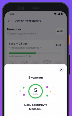 Пользователи приложения могут просматривать текущие оценки и получать подробную информацию о всем. Также имеется возможность отслеживать промежуточные и итоговые показатели успеваемости по предметам.
