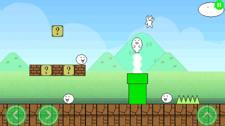 В Cat Mario вам предстоит игровой процесс похожий на Super Mario, или кто-то её видел. Отличием от игры станет герой. Вам нужно играть за белого котика. Противники выглядят по-другому. Преодолевать разные преграды которые возникают из воздуха и могут убить вашего героя. Игра погрузит вас в лютейшее испытания которые даже опытный игрок может не справиться за одну жизнь.