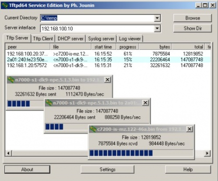 Бесплатная программа для Windows открытым исходным кодом в которую входит настройки DHCP, TFTP, SNTP и Syslog серверы, а также клиент TFTP. Наличие IPv6. С официального сайта можно скачать 64-битную операционную систему Tftpd64. Автоматически поддерживает DHCP-сервер без границ как и статическую задачу ip-адресов.