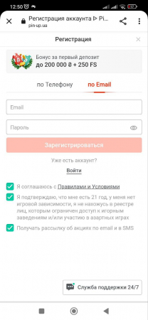 1. Зарегистрируйтесь на сайте Pin-Up.