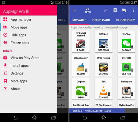 Скачать AppMgr Pro III новая версия 5.67 бесплатно для Android