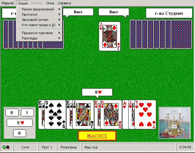 Приложение предлагает пользователям погрузиться в профессиональную карточную игру в которую вы сможете сразиться в интеллектуальном соревновании. Игра предоставит возможность играть в разные виды преференса такие как Сочинку, Ленинградку, Ростов, коллективную пульку или гусарик.