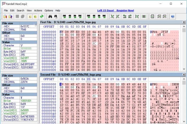 Вы сможете двигать файлы вверх, вниз, вправо, влево и копировать из одной папки в другую. Поддерживается Все размеры файлов до 4 Гб. Устанавливаете своё цветовую схему в которой вы сможете управлять различными блоками и файлами а также выбирать их по отдельности, а также искать быстрым поиском. Сравнивайте файлы в текстовом формате. Выбирайте по собственному убеждению строку поиска в двух форматах. Наличие горячей клавиши способна задавать самому строку поиска. Работайте только в HexCmp с клавиатурой.