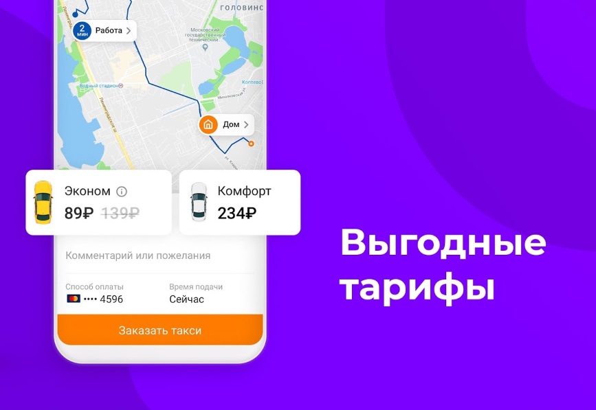 Самое дешёвое такси от -89 руб, Но если у вас привязана банковская карта, то вы сможете с комфортом оплатить дорогу платёжной системой. Приложение даёт пользователям безопасность и быстроту на дорогах а также максимальной Комфорт. Все машины технологичные и оснащенные современны дизайном.