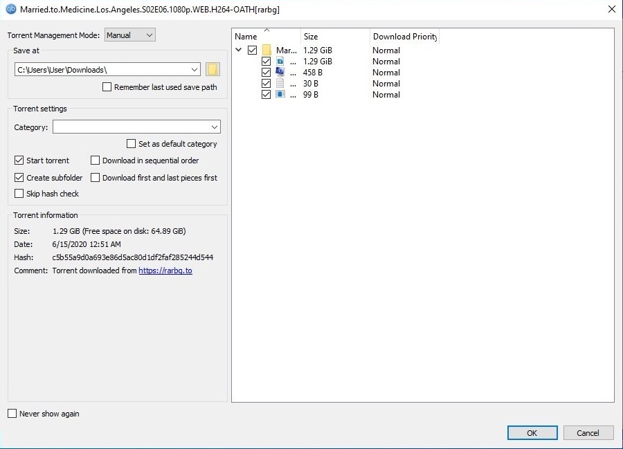 - Выбор конкретных файлов из торрент-пакета для загрузки.