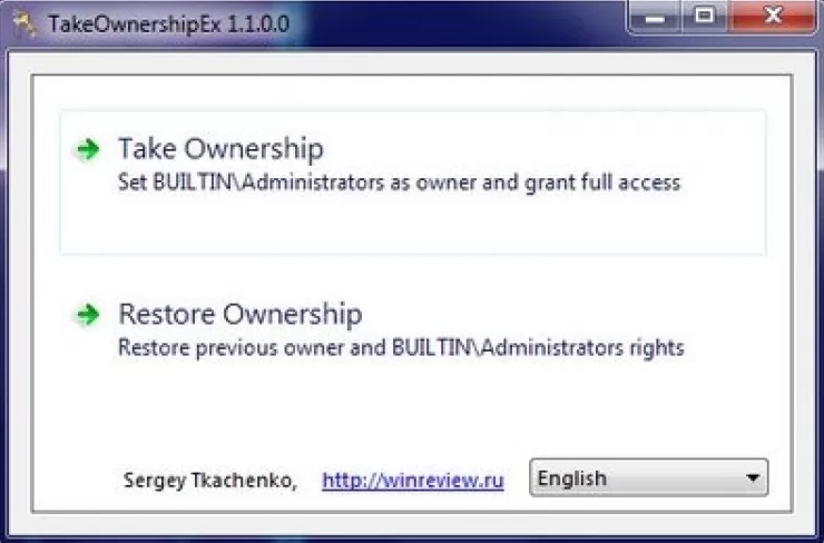 Вам необходимо поменять владельца файла папки и получить полный набор возможностей. С этой функцией справиться программа TakeOwnershipEx. Вы сможете переименовать любые файлы или папки на жёстком диске получил весь доступ и настройки прав. Всегда за пару кликов вы сможете открыть различного рода папок.