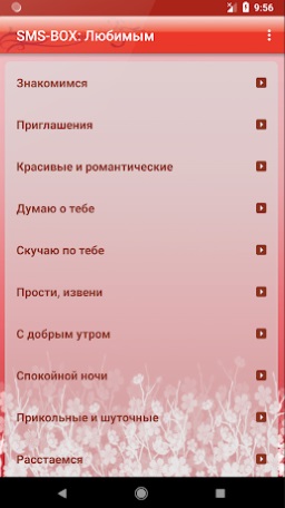 Вы найдёте любую тематику ситуацию и текст на собственный вкус. Все пункты разделены на несколько категорий для более удобного использования встроенно поиск, что очень необходимо. Даже вы найдёте сборник SMS в которых пользуются популярностью и у других пользователей. В общем если вы хотите подарить незабываемые эмоции и вызвать улыбку на лице то скачивайте программу и отсылайте сообщение различного темы каждое время.