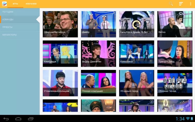 - Встроены все КВН с 1991 года и доступно к просмотру.