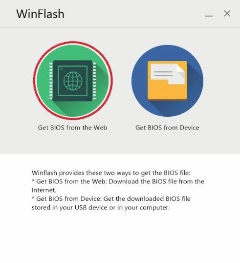 ASUS WinFlash предоставляет два удобных способа обновления BIOS: загрузку файла из Интернета или получение его с устройства, например, USB-накопителя, или с хранилища на том же компьютере.