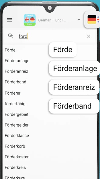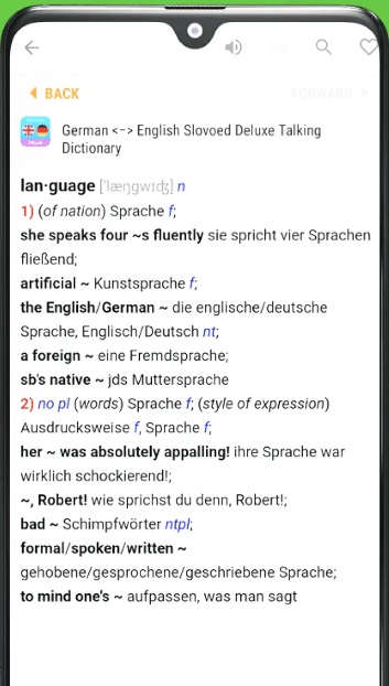 Приложение предлагает пользователям 110 словарей на 35 языках мира для смартфона. Вы сможете воспользоваться поиском вводя необходимые слова просматривать разные формы слов, введите обычные методом голосовым и ручным, водителя чужеродные слова заменяйте буквы в которых не уверены символами"*" и "?".