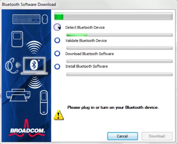 Состоит из следующих шагов - это обнаружение устройства получения о нём всей информации загрузка программного обеспечения и постепенная загрузка. Возможно потребуется перезагрузка вашего ПК чтобы все функции установились правильно для блютуза.