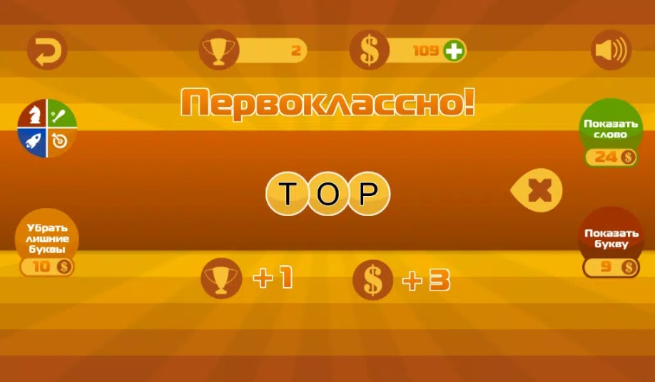 Угадывайте больше слов и вы получите больше очков. За угаданные слова отдаются монетки которые Может я использовать в дальнейшем для покупки разных подсказок и упрощении игры.