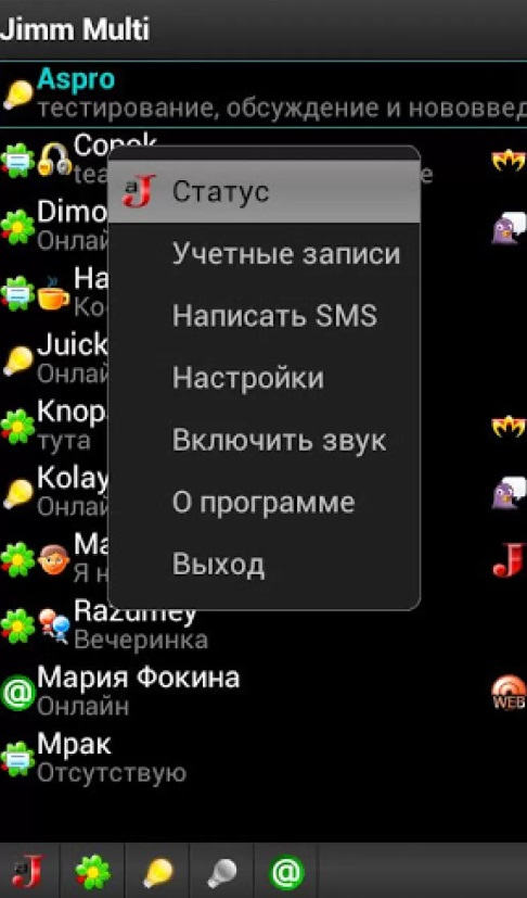 - Jimm Multi предлагает функцию в которой сможете следить за статусом ваших друзей и контактов.