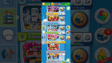 В игре вы можете зарабатывать деньги и направлять их в развитие своего бизнеса. Вы можете разблокировать новые возможности и здания, расширять небоскреб и кофейню, добавлять новые этажи и улучшения.