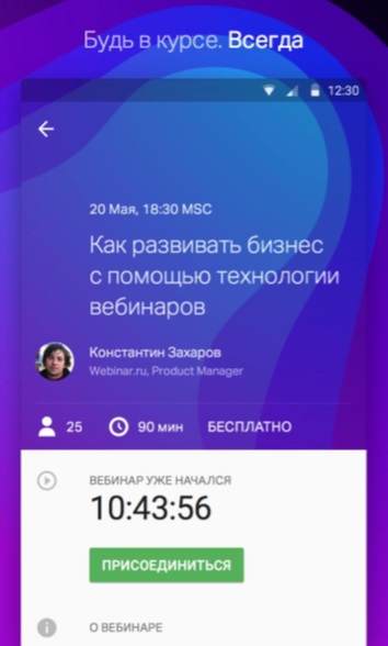 Webinar - это удобное приложение, предназначенное для участников вебинаров на платформе. Пользоваться программой довольно просто - после получения приглашения на мероприятие или регистрации и получения ссылки на почту, вебинар автоматически появится в вашем личном кабинете.